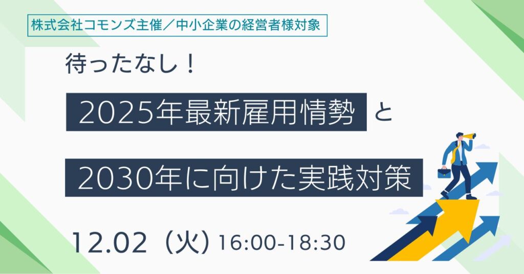 12月2日(火)に開催される、中小企業経営者様向けセミナー「待ったなし!2025年最新雇用情勢と2030年に向けた実践対策」(主催:株式会社コモンズ様)に、新潟事務所所長の弁護士 朝妻太郎が講師として参加します。