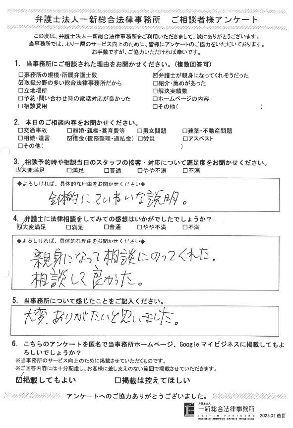 《お客様の声》親身になって相談にのってくれた。相談して良かった。