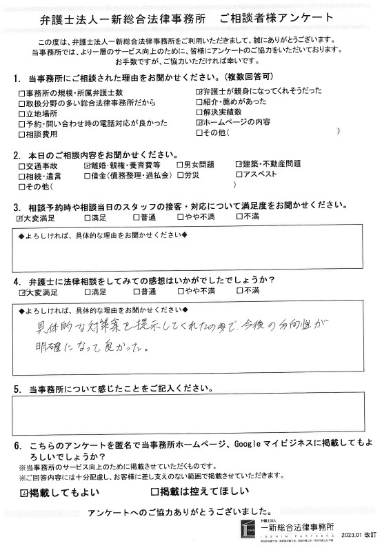 離婚・親権・養育費等でご相談されたお客様の声をご紹介します