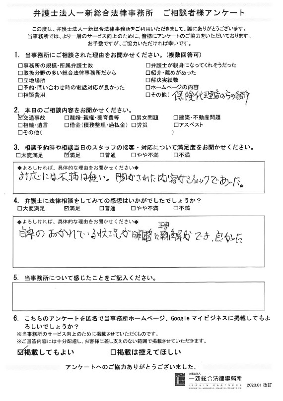 《お客様の声》自身のおかれている状況が明確に理解でき良かった。