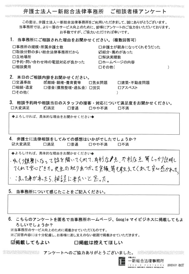離婚・親権・養育費でご相談されたお客様の声をご紹介します