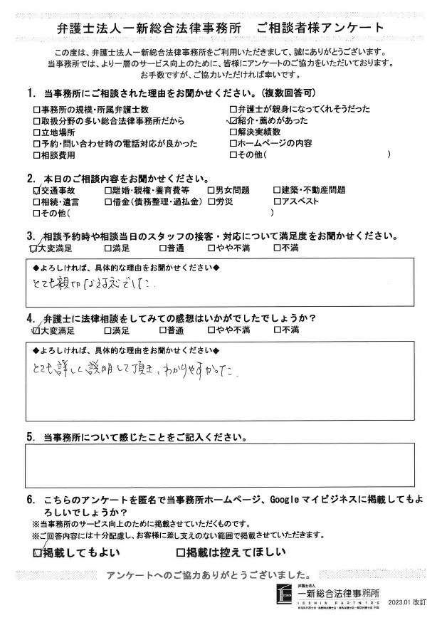 *交通事故のご相談されたお客様の声*