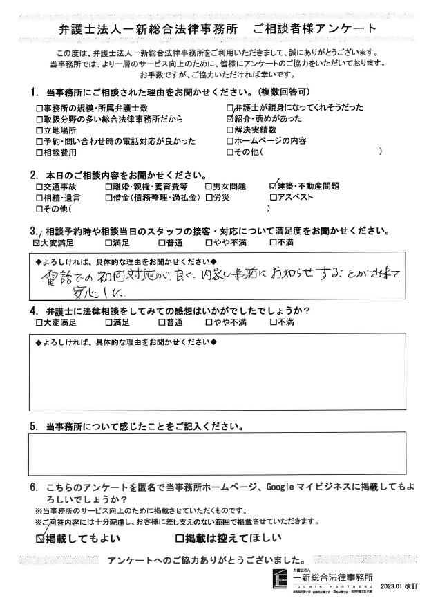 建築・不動産問題でご相談されたお客様の声をご紹介いたします