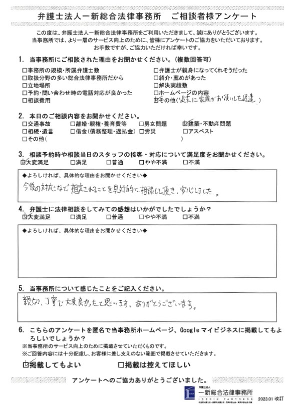 建築・不動産問題でご相談されたお客様の声をご紹介いたします