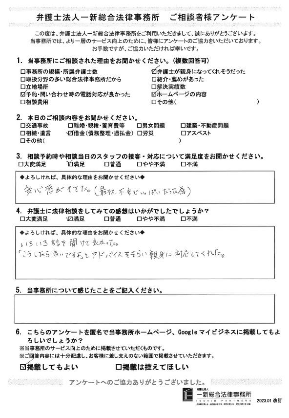 借金問題で長岡事務所にご相談されたお客様の声をご紹介します