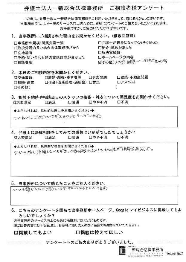 *新潟事務所で交通事故のご相談されたお客様の声*