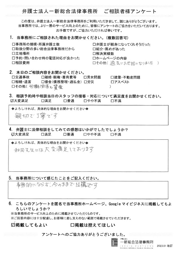 その他の問題で新潟事務所でご相談されたお客様の声をご紹介いたします