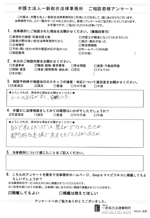 離婚・親権・養育費でご相談されたお客様の声をご紹介します