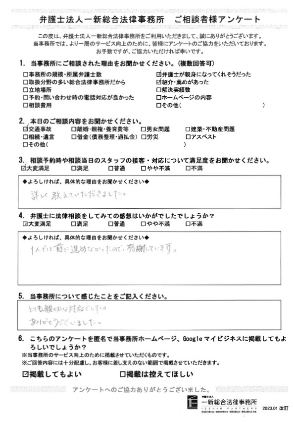 *長岡事務所で交通事故のご相談されたお客様の声*