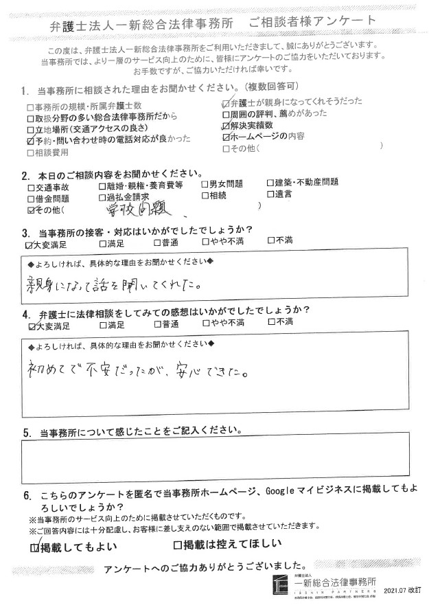 その他の問題で新発田事務所でご相談されたお客様の声をご紹介いたします