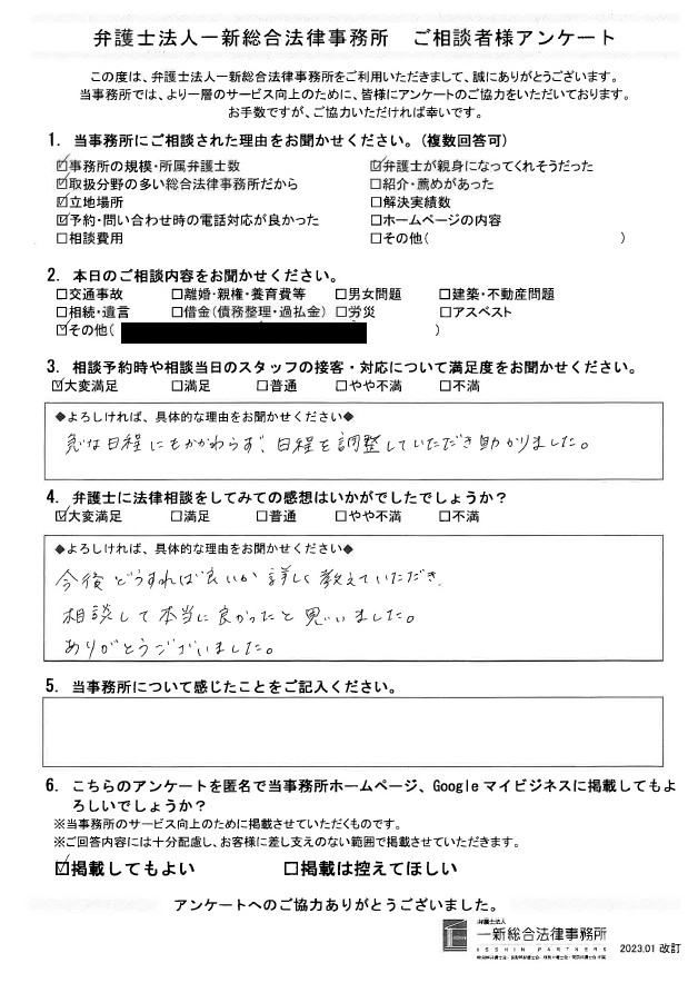 その他の問題で新潟事務所でご相談されたお客様の声をご紹介いたします