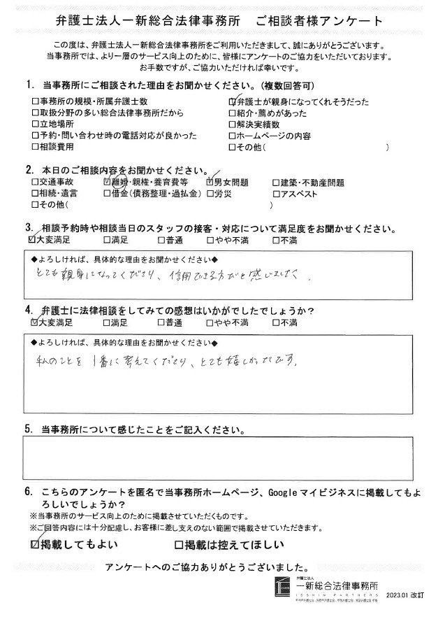離婚・親権・養育費でご相談されたお客様の声をご紹介します